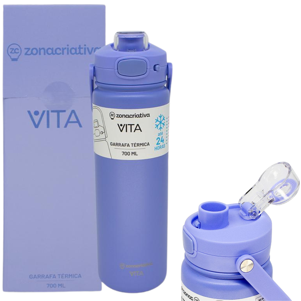 Garrafa Vita Lavanda Térmica 12 Horas Quente Gelada Grande Roxa 700ml Com Alça Trava Segurança!